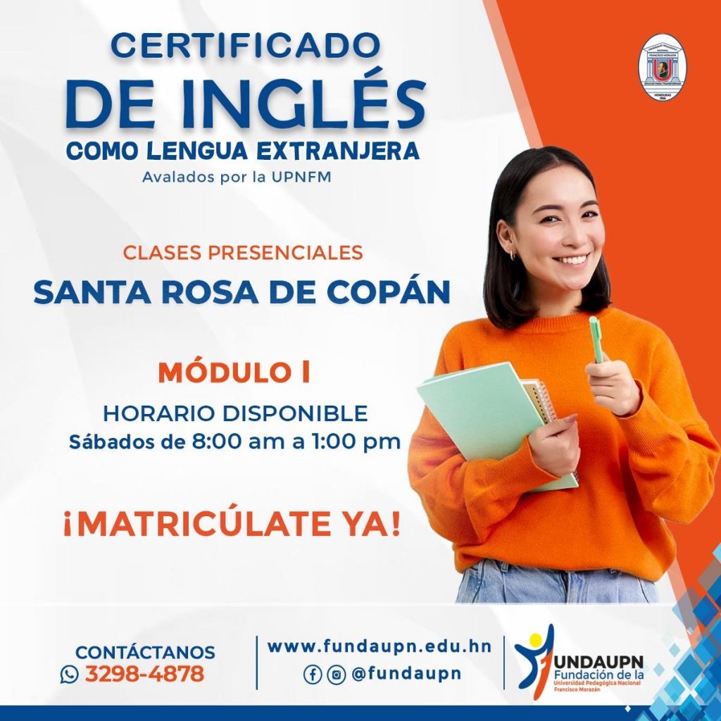 Santa Rosa de Copán, Honduras.- Si es de los que prefiere la presencialidad a la hora de estudiar. Las clases para cursar el módulo I del Certificado de Inglés como Lengua Extranjera, que están por iniciar en la sede de la FUNDAUPN de Santa Rosa de Copán, son una excelente opción.