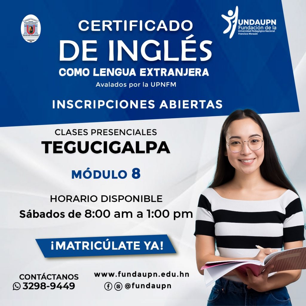 No se quede fuera, inscríbase ya para cursar clases presenciales y virtuales del módulo 8 del Certificado de Inglés en la FUNDAUPN Tegucigalpa