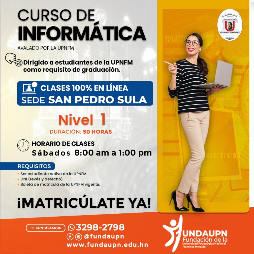 San Pedro Sula, Honduras.- Como una oferta de la FUNDAUPN exclusiva para estudiantes de la Universidad Pedagógica Nacional Francisco Morazán (UPNFM) próximos a graduarse, como requisito indispensable de graduación, la FUNDAUPN ofrece el Curso de Informática.