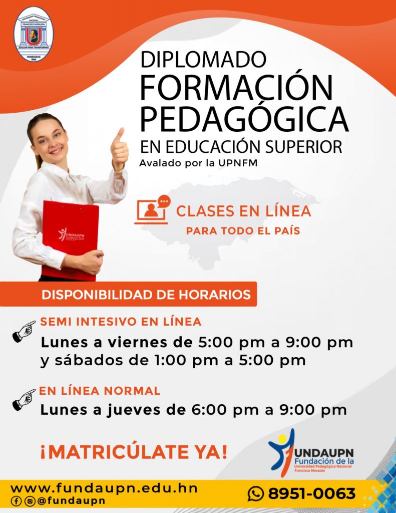 Tegucigalpa, Honduras.- Avalado por la Universidad Pedagógica Nacional Francisco Morazán, el Diplomado de Formación Pedagógica en Educación Superior que imparte la FUNDAUPN es la mejor opción a la que cualquier profesional que desee llevar su formación a otro nivel, puede acceder.