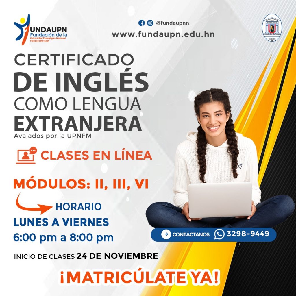 Tegucigalpa, Honduras.- La FUNDAUPN inicia este lunes 24 de noviembre las clases en línea para los módulos II, III y VI del Certificado de Inglés como Lengua Extranjera. Si aún no se ha matriculado, corra, está a tiempo de no quedarse fuera y continuar con su formación.
