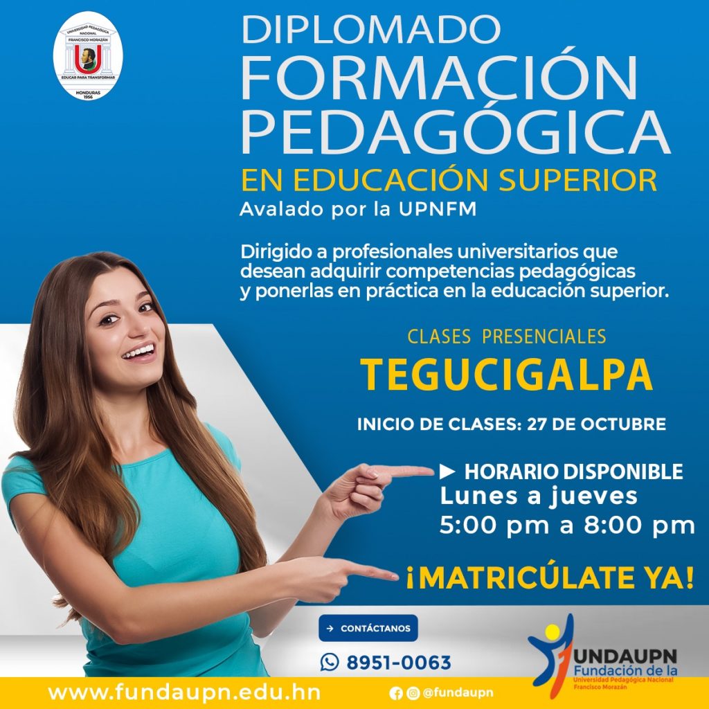 Tegucigalpa, Honduras.- Si es de los estudiantes que prefiere las clases presenciales, el Diplomado de Formación Pedagógica en Educación Superior es su opción de estudios.