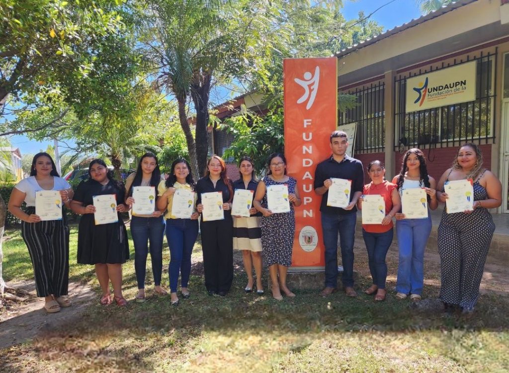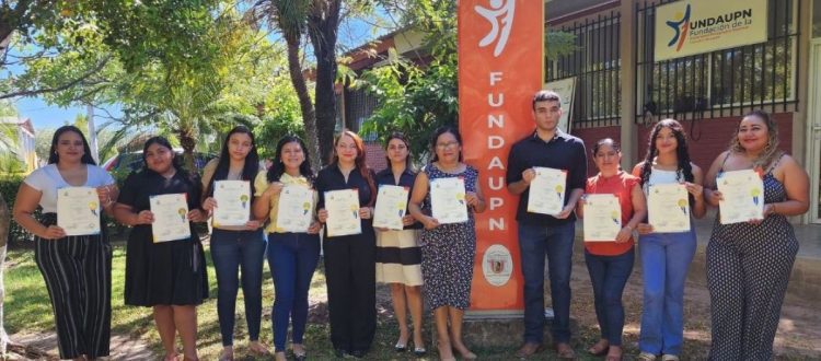Las autoridades de la FUNDAUPN Choluteca entregan diploma de egresados a un grupo de estudiantes del Certificado de Inglés como Lengua Extranjera