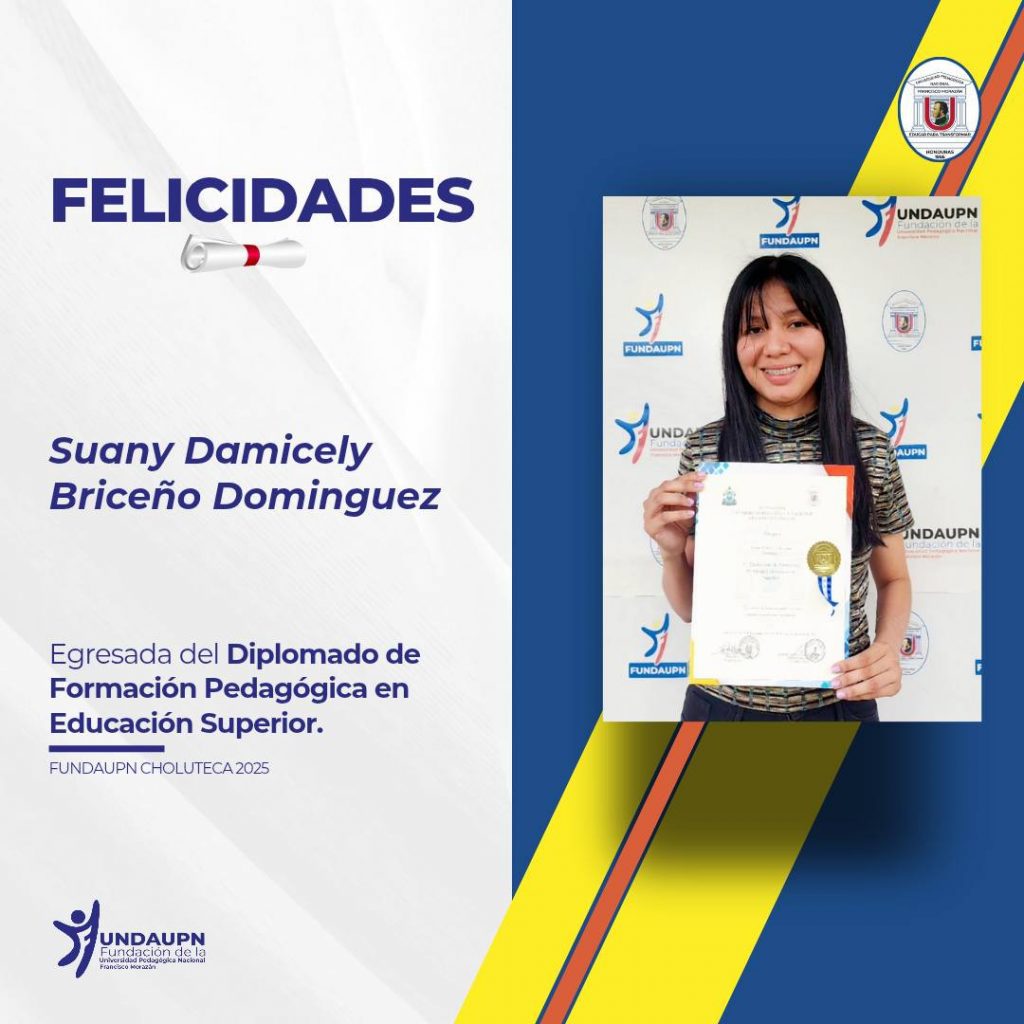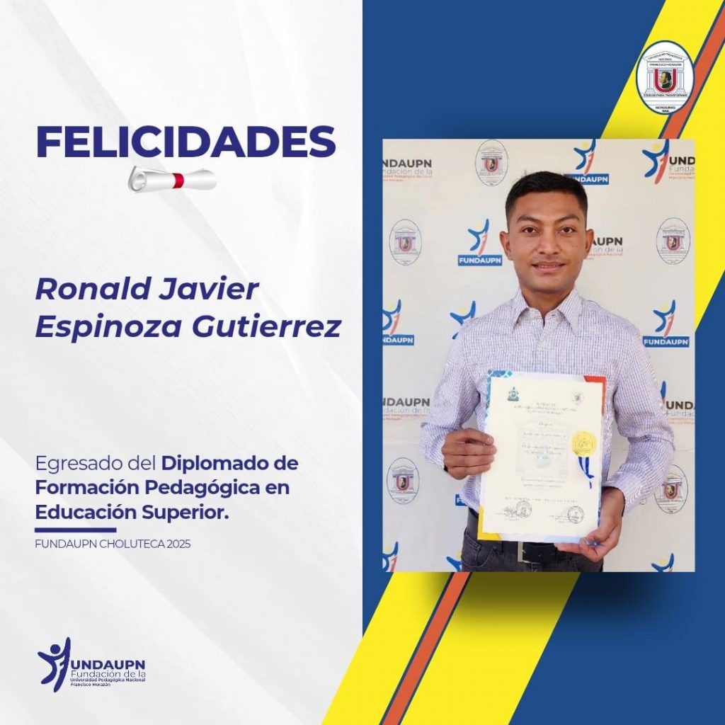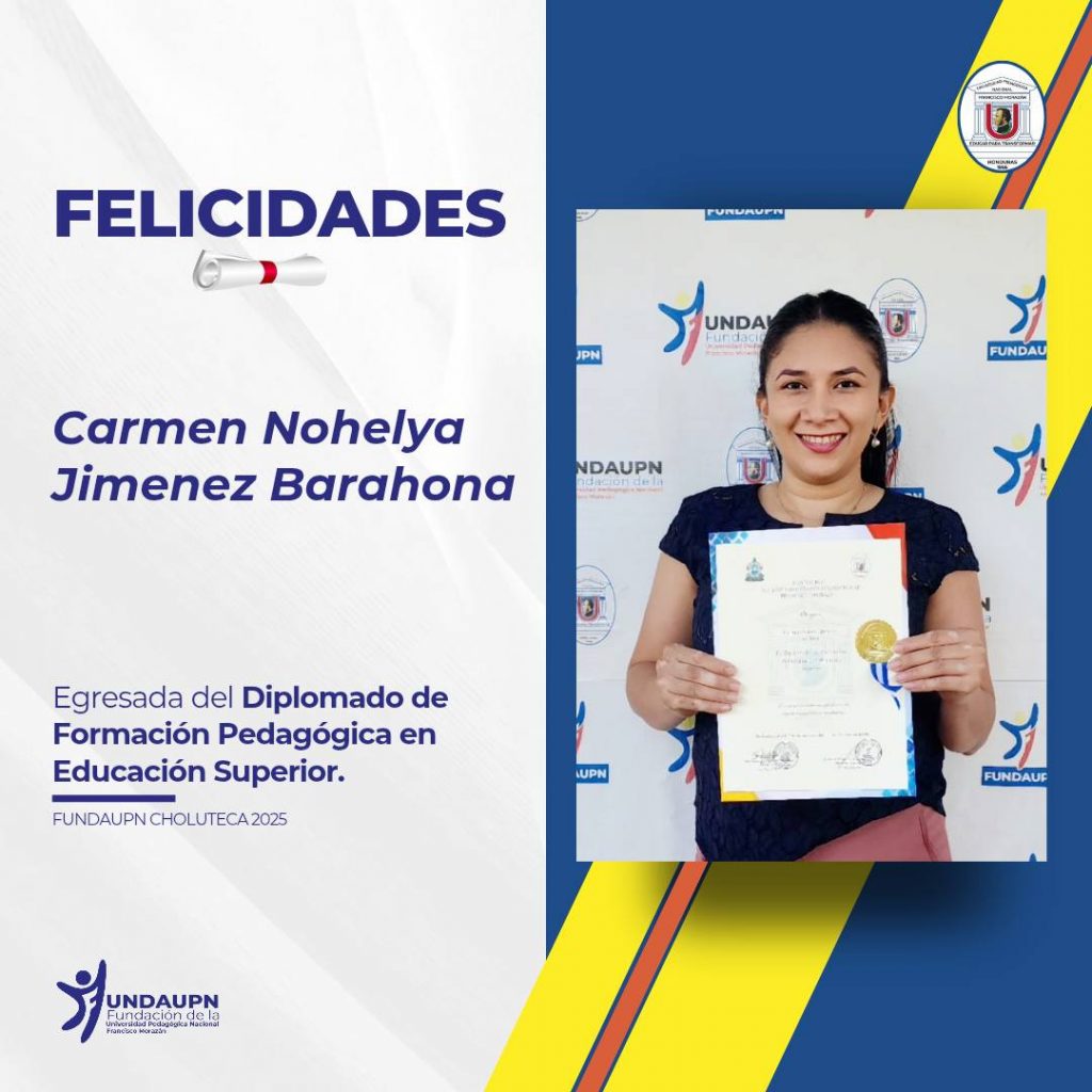 En la FUNDAUPN Choluteca celebramos éxito de egresados del Diplomado de Formación Pedagógica en Educación Superior. Reconocemos su compromiso y vocación por la enseñanza, y agradecemos la confianza en nuestra institución