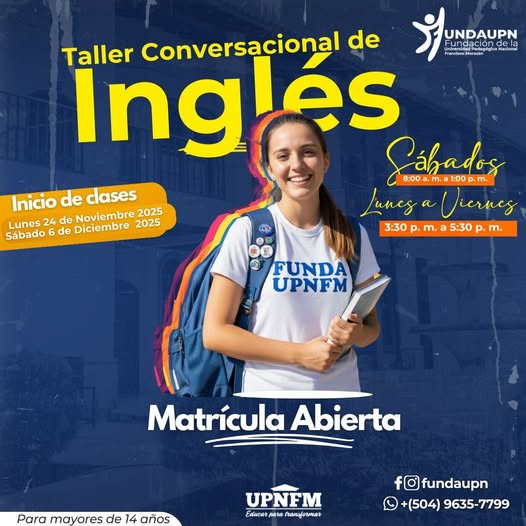 Listos para matricularse en el Taller Conversacional de Inglés para Principiantes en la sede de la FUNDAUPN de Choluteca. No se quede fuera