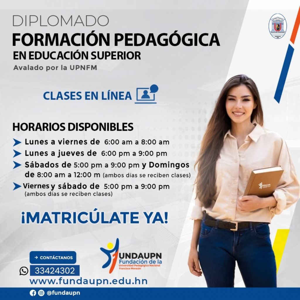 Tegucigalpa, Honduras.- Ya no tiene ningún pretexto para no iniciar su formación como docente universitario. La FUNDAUPN se adapta a sus necesidades y abre cuatro horarios para cursar el Diplomado de Formación Pedagógica en Educación Superior.